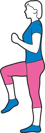 Držite se za radnu površinu i marširajte na licu mesta kako biste naizmenično podigli kolena ka grudima. Vaš fizioterapeut može preporučiti da ne podižete koleno iznad nivoa kuka.