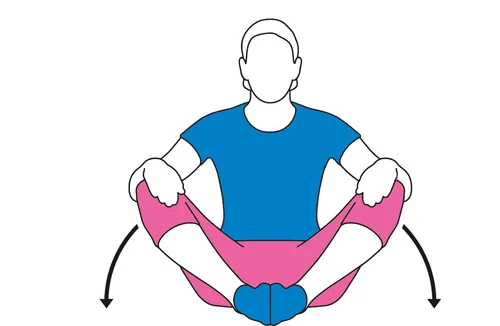 Sedite sa savijenim kolenima i spojenim stopalima. Pritisnite kolena prema podu koristeći ruke po potrebi. Alternativno, lezite na leđa i razdvojite kolena, držeći stopala zajedno. Podignite pokret do tačke kada osetite istezanje, zadržite oko 10 sekundi i opustite se. Ponovite 5-10 puta.