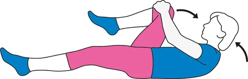 Lezite na leđima. Povlačite naizmenično kolena ka grudima, držeći drugu nogu ravnom. Podignite pokret do tačke kada osetite istezanje, zadržite oko 10 sekundi i opustite se. Ponovite 5-10 puta. Ako je ovo teško, pokušajte da povučete petu po podu prema dnu za početak, a kada vam bude udobno, pokušajte da podignete koleno kao gore.