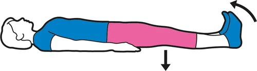 Lezi na leđa. Savijte nogu i povucite koleno prema grudima. Ponovo povucite petu nadole i polako ispravite koleno.