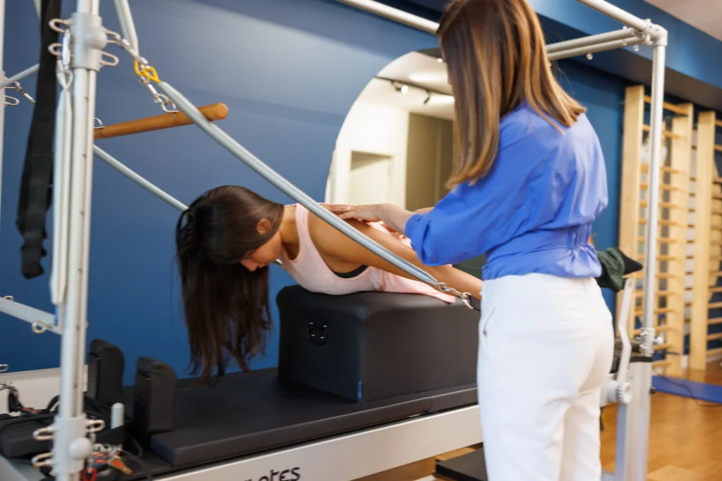 Klinički pilates predstavlja kombinaciju vežbi na pilates reformeru i stručnog fizioterapeutskog znanja sa ciljem korekcije različitih slabosti i problema, kao što su npr. bol u ledjima i vratu.